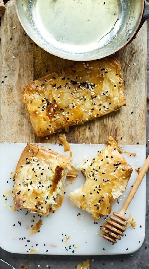 Feta enrobée de pâte filo, miel & huile extra vierge d’olive