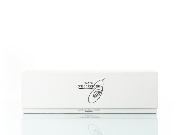 Nos 4 huiles d’olive extra vierge dans un coffret unique et élégant pour un cadeau unique! Découvrez la beauté des reflets de l’or liquide et faites étinceler les yeux de qui recevra ce cadeau. La coffret Deluxe contient 4 x 250ml flacons Terre d’Eccezione (Blend, Leccino, Mignola et Raggia).